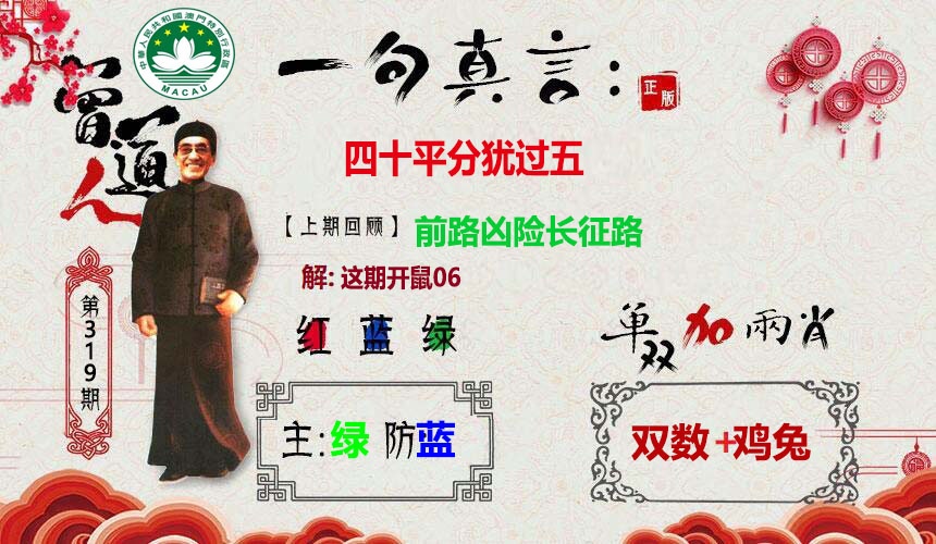 | 318期 | 〖虎羊狗龙鼠蛇〗实现梦想的强料 | 开:鼠06准 |