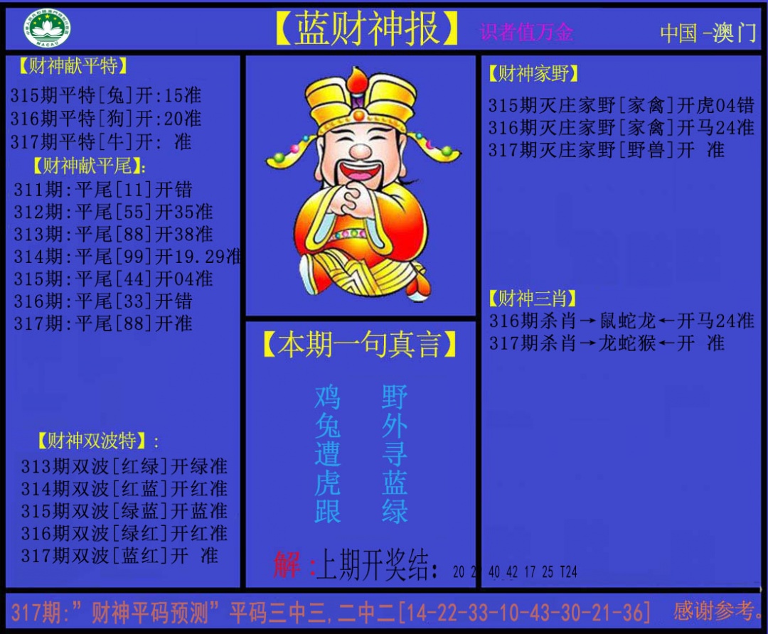 | 317期: 买啥都中 【阴肖阴肖阴肖】开:?00准 |