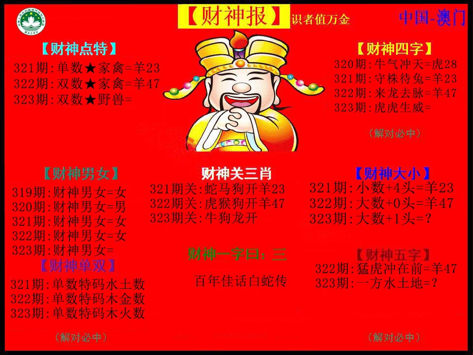323期: 买啥都中 【男肖男肖男肖】开:?00