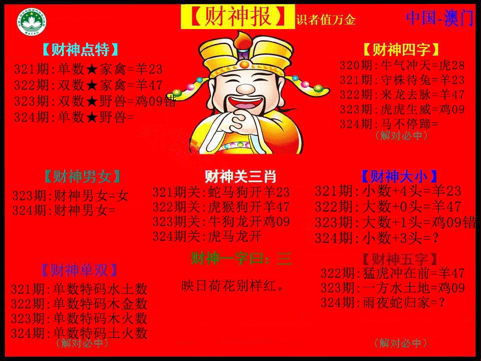 321期: 买啥都中 【地肖地肖地肖】开:羊23