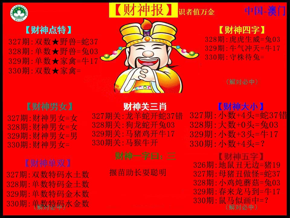 | 327期:半波特码【蓝单】开:蛇37准 |